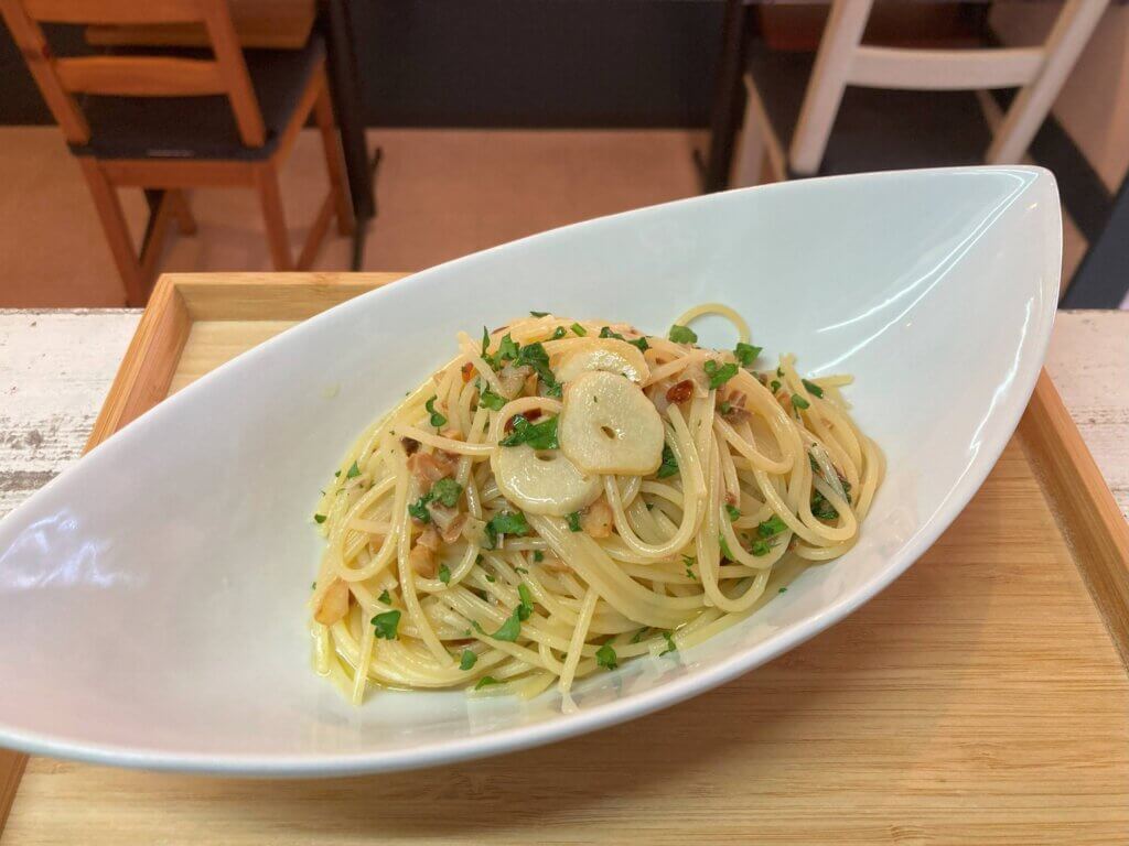 ニンニクで作る超シンプルなパスタ。オリーブオイル・ニンニク・鷹の爪の3種の食材が織りなす絶妙な美味しさ!★こちらのパスタにはミニトーストがつきます★