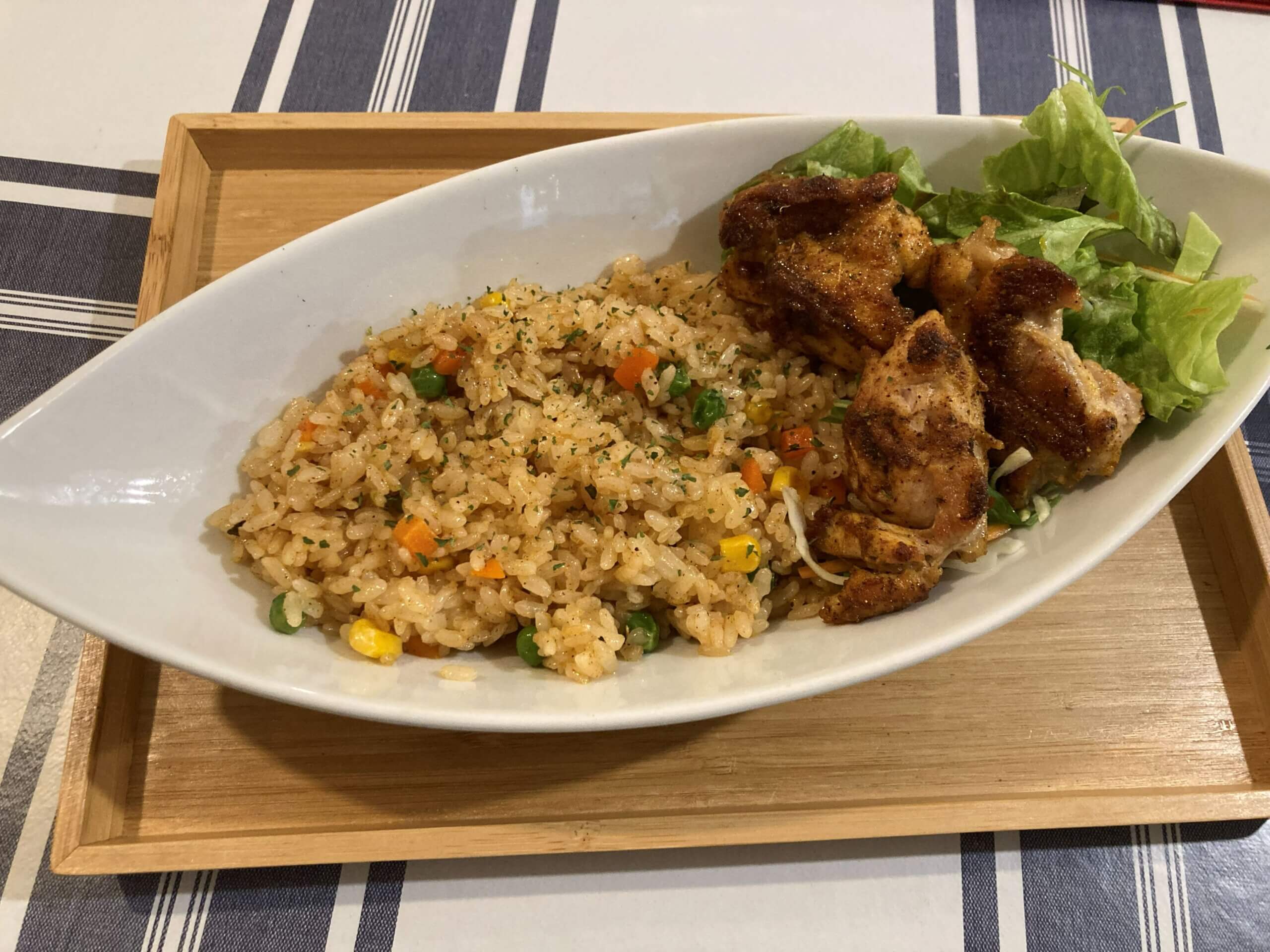 サラダ付きランチ:ジャンバラヤとタンドリーチキンのプレート
