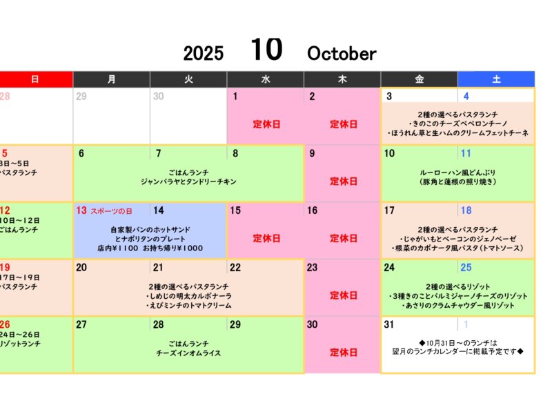 10月ランチのお知らせ
